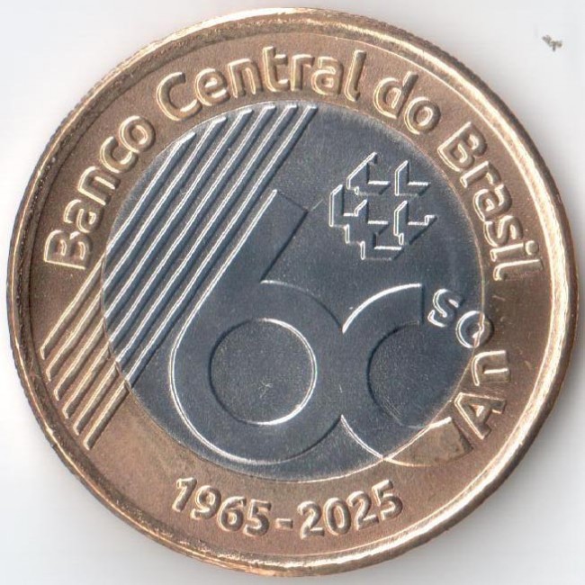 Бразилия 2025 1 реал 60 лет Центральному банку.