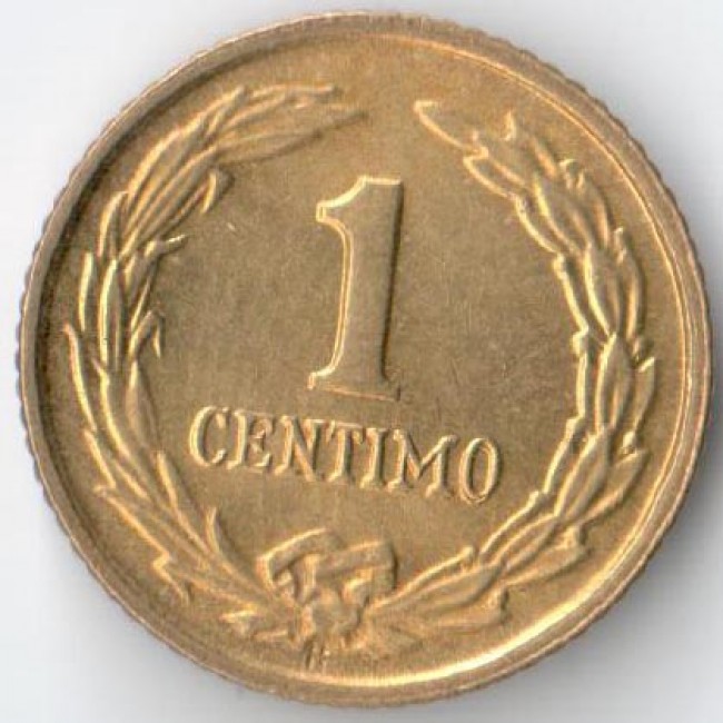 Купить парагвайскую монету 1950 года выпуска (1944 - 1950) номиналом 1 сентимо, номер по каталогу: KM# 20