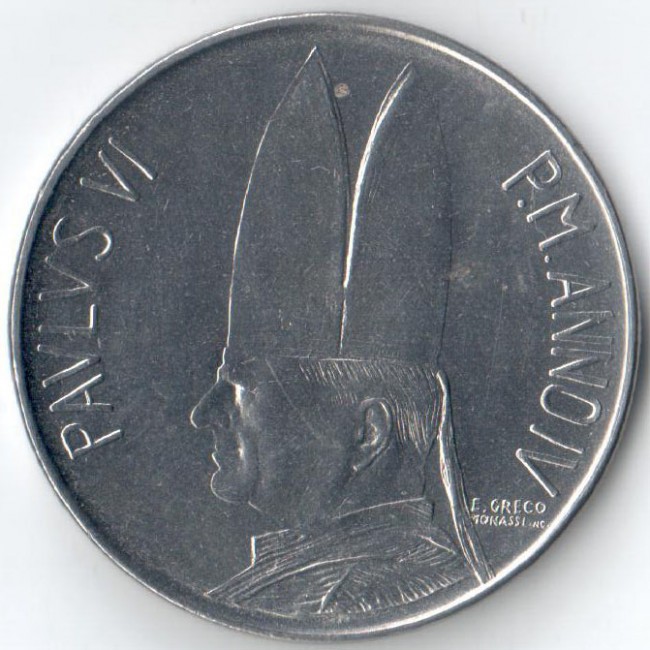 Ватикан 1966 100 лир Пастух (MCMLXVI Павел VI)