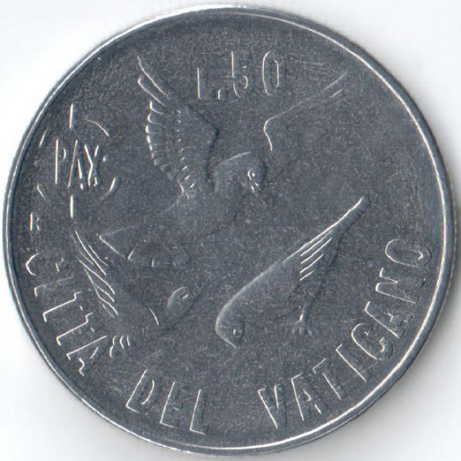 Купить Ватиканскую монету 1984 года выпуска номиналом 50 лир Год мира (MCMLXXXIV Иоанн Павел II), номер по каталогу KM# 179.